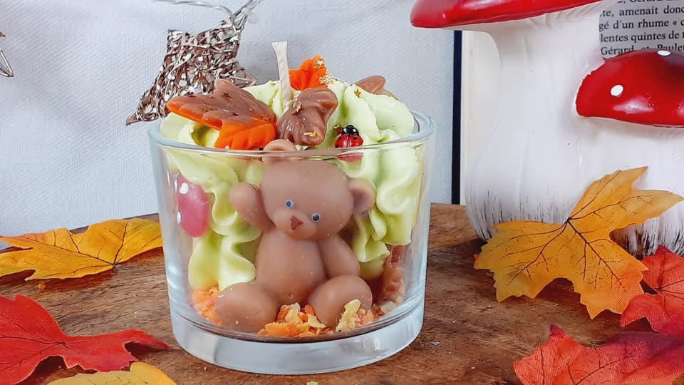 Forêt des petits rêves - Béryl, le petit ours d’Automne - Bougie artisanale parfumée 🧸©️